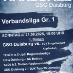 Posted on 22. September 2025GSG Duisburg – SG 1 Burgaltendorf/Kupferdreh 22:7 (11:3) Im ersten Saisonspiel standen die 1. Damen der GSG Duisburg dem Aufsteiger SG1 Burgaltendorf/Kupferdreh gegenüber. Nervosität war auf beiden Seiten bis zum Ende der 5. Spielminute erkennbar, bis die Großenbaumerinnen das Heft in die Hand nahmen und bis zur 13. Minute auf 5:0 davonzogen. Schöne Auslöseaktionen führten