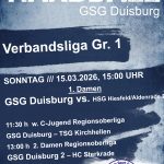 Posted on 16. März 2026GSG Duisburg – TSG Kirchhellen 37:17 (20:10) Bereits zur Halbzeitpause hatten die GSG-Mädel mit einer starken Vorstellung mit 10-Toren die Nase vorn. Alle Spielerinnen bekamen Einsatzzeiten und konnten sich empfehlen. Am Ende stand ein klarer Sieg, der erneut 2 Punkte einbrachte. Nun heißt es am kommenden Samstag, dem 21.03.2026, 12:00 h, Sporthalle Biegerhof 4 (Berthold-Brecht-Berufsschule)
